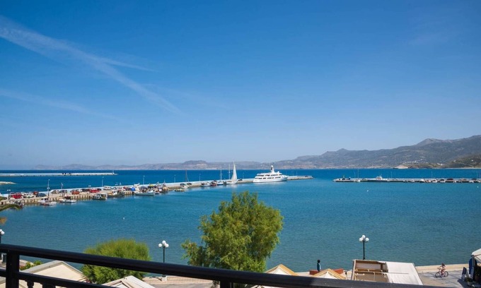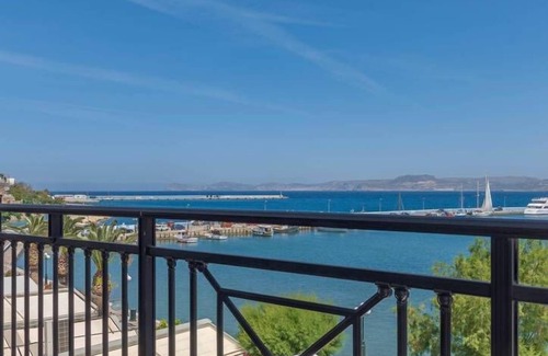 The balcony offers uninterrupted view of the sea and the port promenade below. A small wooden table and 2 chairs offer the perfect spot for a hearty breakfast before heading out to town or the local beach.