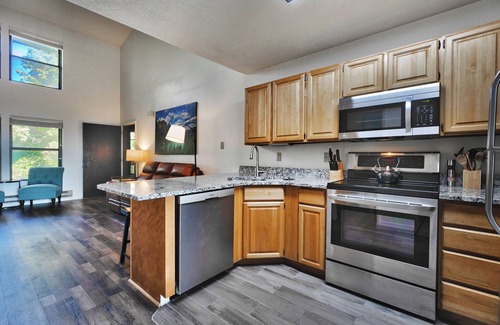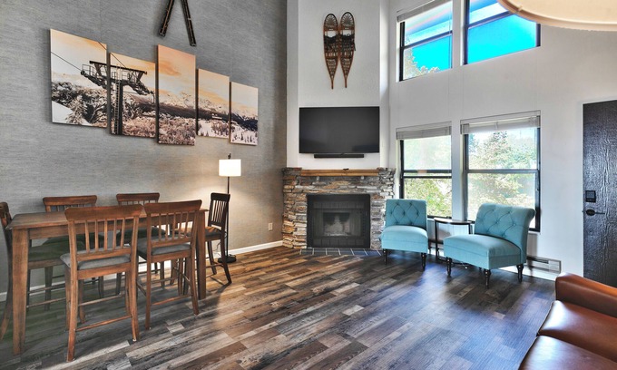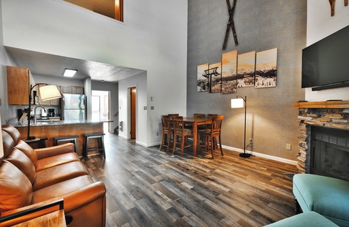 Newly-renovated ski condo on the Wolf Lodge golf course. Walk out onto the course.