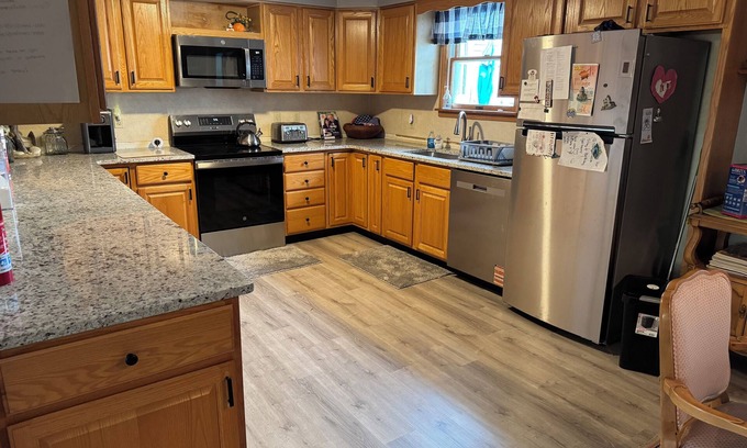 Quaint lake front home, with closed in sun porch, decks, and spacious yard. Rails to trails 2/10 a mile away. Wedding venues close by-The Pennsylvania Farm at Cottrell or on Birchtown Stables. Full kitchen and dining room. Lots of counter top to prepare and bake cookies. Tables to enjoy meals outside on decks or near lake. Enjoy local flavor meals from Cables General Store- sit outside by the red caboose and creek, eat at the Speakeasy Restaurant or Beacon. Discount for 7 nights or a month. Observe eagles fly across the lake, deer in the yard, a blue heron fly by, and a zillion stars in the sky on a clear night.