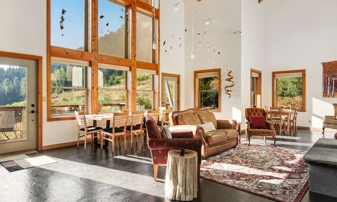 Ski-in/ski-out home with mountain-view balcony, multiple living areas, & W/D | House in Snoqualmie Pass