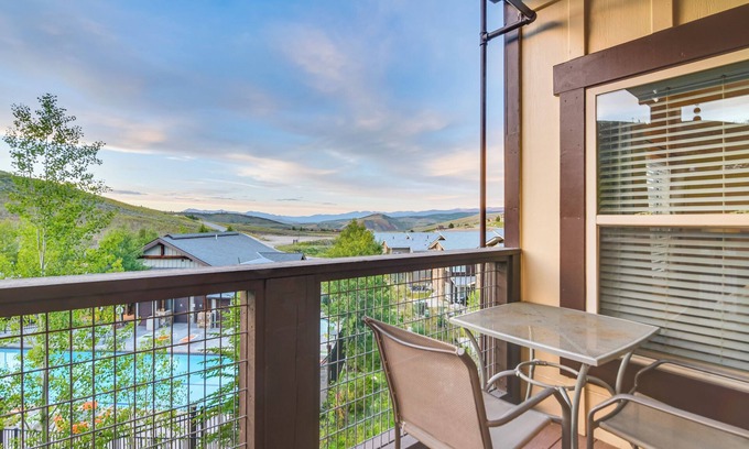 Balcony w/ View of Mountains & Pool | Ski Storage On-Site | Family Friendly
