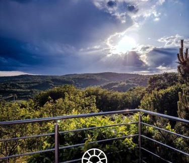 Providing a garden, Sky Resort features accommodations in Gunjavci. This property offers access to a terrace, free private parking, and free Wifi. This air-conditioned 2-bedroom villa comes with a fully equipped kitchen, a seating area, a dining area, and a flat-screen TV. Guests can take in the views of the mountain from the balcony, which also has outdoor furniture. The accommodation has a fireplace. The villa also provides an infinity pool and a hot tub for guests to relax in.