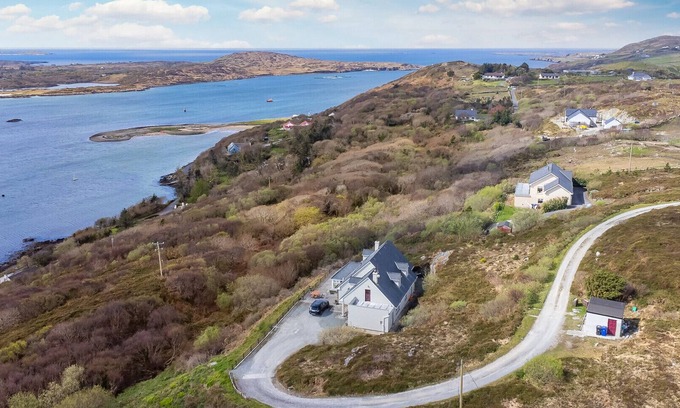 Discover the Breathtaking Beauty of Sky Road Lodge: A Premier Destination for Serenity and Adventure in ClifdenPerched on the scenic Sky Road and overlooking the ruggedly beautiful Connemara landscape, Sky Road Lodge offers an exceptional retreat for those who appreciate the finer things in life. This grand 260 m² house comfortably accommodates up to 7 guests, featuring panoramic views that sweep across the sea to the distant mountains. Here, elegance meets tranquility, inviting you to indulge in the luxury of space and the peace of natural beauty.Strategically positioned just minutes from Clifden’s town center, the lodge serves as a perfect base to explore local cuisine, culture, and the natural beauty of Connemara’s rugged terrain. Whether you’re looking for adventure or relaxation, Sky Road Lodge offers both tranquility and easy access to outdoor activities.The home beautifully blends contemporary and traditional decor, emphasizing comfort and style with fine attention to detail.Sky Road Lodge is more than just a place to stay—it’s a luxurious haven where every moment is a celebration of the natural beauty surrounding it.Ground Floor:Sunroom: A welcoming, light-filled space perfect for relaxation and enjoying panoramic views.Kitchen: Equipped with all necessary appliances, providing functionality and convenience.Living/Dining Area: A spacious area for family gatherings and meals.Sitting Room: Features an open fire to cosy up to and relax.Toilet: Conveniently located for guest and family use.First Floor:Double Room: A cozy bedroom suitable for two, located conveniently close to a separate bathroom.Bathroom: Features a combination bathtub and shower, positioned across the hall from the double room.Triple Room (Ensuite): A versatile bedroom featuring one double bed and one single bed, equipped with an ensuite shower.Family Room:Entry Area: Twin bedroom setup with two single beds.Main Sleeping Area: Features a luxurious king bed.Private Ensuite: Includes a shower, enhancing privacy and convenience.