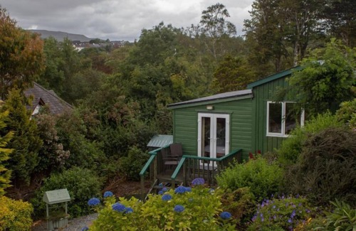 Cosy, comfortable chalet "Skye Garden Accommodation", detached. On the outskirts, 1 km from the centre of Portree, in a secluded, quiet position, 500 m from the lake. Wildlife garden and flowers. Private: patio, garden furniture, parking at the house. Shop 1 km, grocery 1 km, restaurant 1 km, bar 1 km, café 1 km, bus stop "Portree" 1 km. Nearby attractions: Dunvegan Castle and Garden 36 km, Old Man of Storr 10 km, Uig Outer Hebrides Ferry 25 km. Please note: car recommended. The owner lives on the same property.