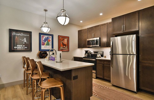 Welcome to your upscale basecamp for your next Summit County adventure! Located in the heart of downtown Silverthorne’s next to Bluebird Market, Skywalk Flats Amphitheater Retreat offers more than a dozen dining options and retail shops right at your doorstep, with additional choices just a short stroll away. Featuring a communal roof top deck with panoramic mountain views, two shared hot tubs and gas firepit, this location has it all. Whether you're hitting the slopes or enjoying summer activities like hiking, biking, or fishing, this condo puts you in the heart of the action.