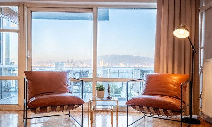 Experience the beauty of Izmir from a prime sea-view balcony in Chios, available for short-term stays and vacation rentals in Izmir. Nestled just 2 minutes from the coast, this modern oasis combines comfort with convenience. Whether sipping morning coffee to the rhythmic ebb of waves or unwinding with sunsets over the Aegean, you'll be captivated by its charm. Ideal for travelers seeking an authentic Izmir experience. Book your coastal getaway today!
