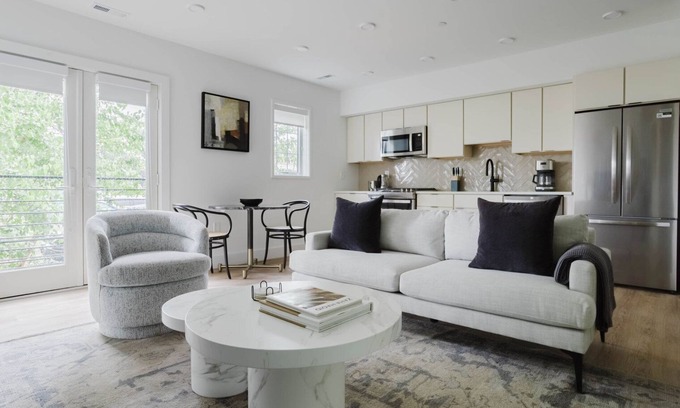 Thoughtfully designed with bespoke finishes, modern furnishings, and a fully equipped kitchen, you’ll enjoy that “I’m home” feeling with this Blueground apartment. Whether you’re lounging in your stylish living room streaming the latest and greatest entertainment on the smart TV or premium wireless speaker, or getting some well-earned rest on the superior quality mattress with luxury linens, you’ll fall in love with everything this Capitol Riverfront apartment has to offer. This apartment also offers in-apartment laundry.