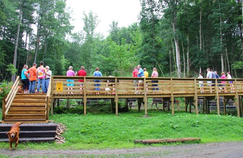 Children will love the hike through the woods to the brand play area, The BC Corral! This custom designed area has everything from swings, zip line, slides, teeter totter, cargo nets, rock wall & even a horse shoe pit for the adults! The kids will love it here!