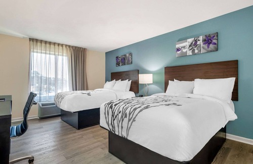 Sleep Inn & Suites offers 87 shared accommodations with air conditioning, coffee/tea makers, and hair dryers. Beds feature Egyptian cotton sheets, down comforters, and premium bedding. A pillow menu is available. 37-inch flat-screen televisions come with premium cable channels. Refrigerators and microwaves are provided.