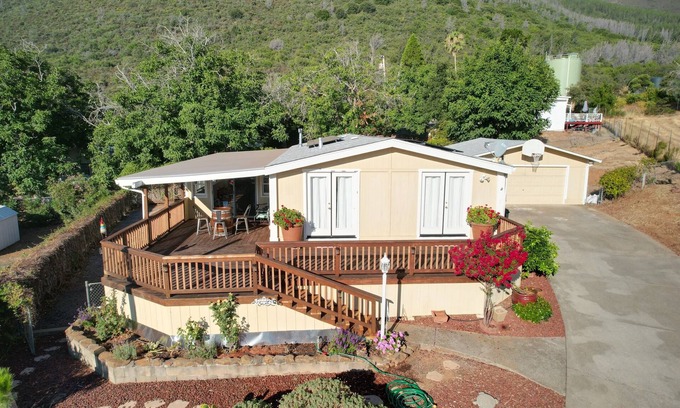 Welcoming you to your home away from home in a very calm and quiet neighborhood. Stunning deck with amazing lake views perfect place to sit back and relax. This is a very spacious 2bd/2bath home with central A/C and heater. Kitchen packed with essentials at your convenience, coffee bar and long stretched driveway for parking. Adventures awaits here in Kelseyville, CA with wineries nearby, casinos, restaurants, boating and much more! This is a hidden gem that you should not miss out on!