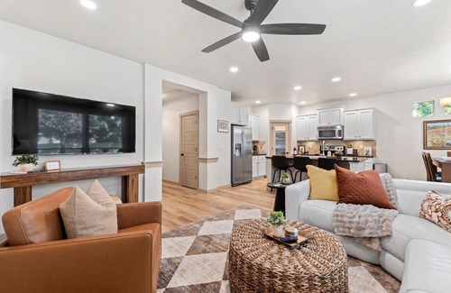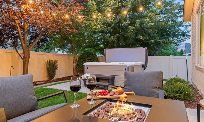 Sleeps 14 comfortably! 7-seat mineral hot tub, firepit, private yard Game garage w/Pac-Man, foosball & 65” TV High-end home with luxe mattresses and linens 4 Smart TVs, fully stocked kitchen Near Roaring Springs, Wahooz, shopping and I-84 is located in Meridian. Sleeps 14 comfortably! 7-seat mineral hot tub, firepit, private yard Game garage w/Pac-Man, foosball & 65” TV High-end home with luxe mattresses and linens 4 Smart TVs, fully stocked kitchen Near Roaring Springs, Wahooz, shopping and I-84 provides accommodation, featuring Pet Friendly, Entertainment, Barbecue/Outdoor Cooking, among other amenities. This House features Pet Friendly, Entertainment, Barbecue/Outdoor Cooking, to make your stay a comfortable one.