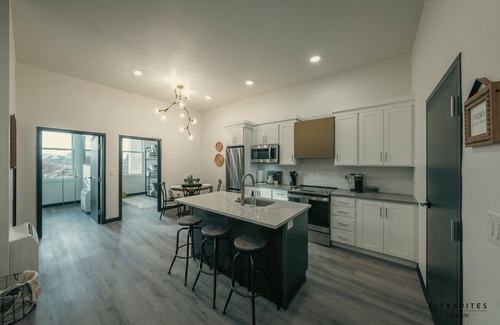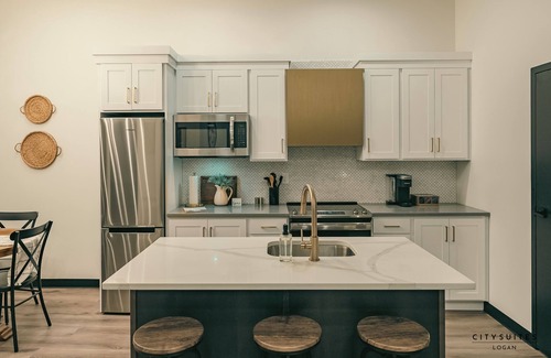 Family-friendly and conveniently located, this modern suite offers the perfect downtown experience. Situated next to the Logan City Plaza, you'll enjoy seasonal activities like the summer splash pad and winter ice rink. Located above Starbucks and adjacent to Stacked Pancakes, you have easy access to your morning coffee and delicious breakfasts.