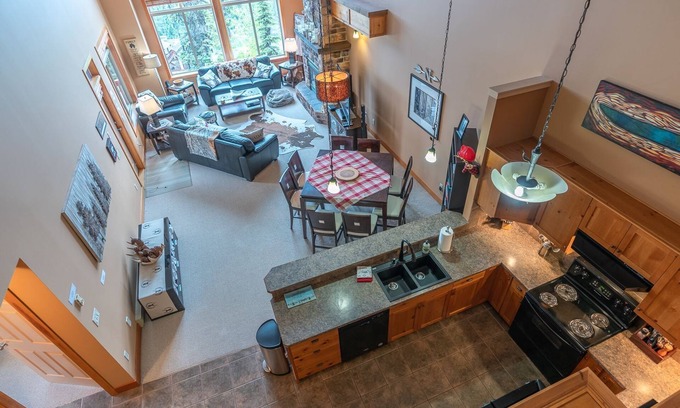 This beautiful private penthouse top chalet in the chalet is perfect for accommodating a few families & friends with 2400 sq. ft and huge 22′ vaulted ceilings there’s room for everyone to gather around and still feel cozy.