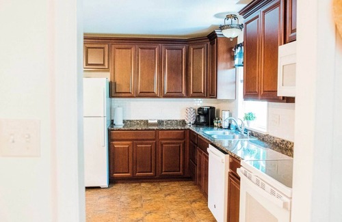 The split-level design makes it easy to access both upstairs and downstairs. The home is equipped with all the amenities you could need for a comfortable stay, including a fully stocked kitchen, TV, Wi-Fi, air conditioning, and a private entrance, to name a few.