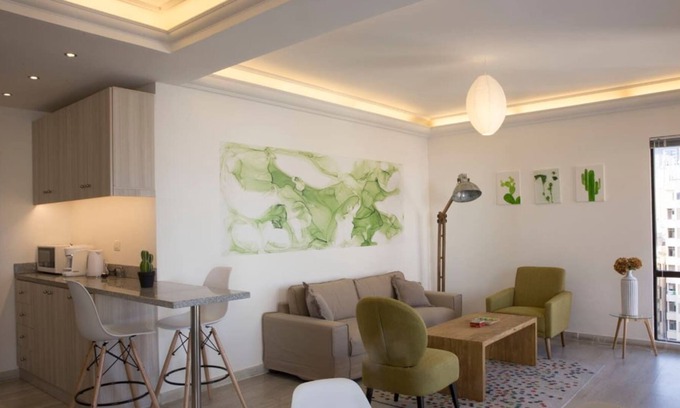 This place was thoughtfully renovated in a classic and neat building. The space juxtaposes old and new elements in effortless harmony to create a zen getaway is the colorful Clemenceau neighborhood of Beirut. Although slightly off the beaten tourist path, you are steps away from the bakeries, Cafés and restaurants in town. You will also find tons of hidden gems in your immediate vicinity such as a traditional copper artisans, an abandoned heritage streets and cue old stores.