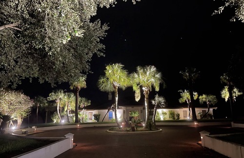 You don't have to drive far for this small town oasis. When you enter the circle drive, prepare to escape to a tropical haven. Huge spacious rooms, large kitchens (2), enormous pool and pool house game room with full size shuffle board and ping pong table! When you get tired you can enjoy the sauna in the master bathroom or curl up on the comfy sofa and watch a movie.. This space has it all whether you are enjoying a staycation, visiting for a wedding or holiday or just want to glamp on your hunting trip to South Texas.