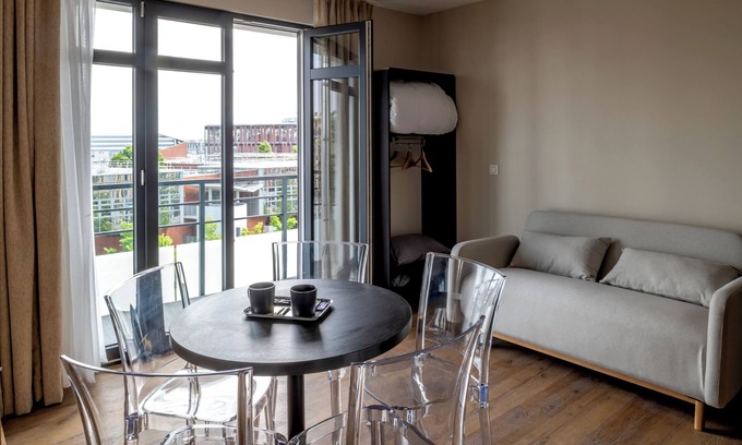 GeneralNumber of bedrooms - 1, Toilet paper, Stovetop, Ping - 6.7, Square meters - 22, Separate dining area, Square feet - 236.8, Wardrobe or closet, In-room climate control (heating), Balcony, In-room climate control (air conditioning), Shampoo, Television, Bed count minimum 2, Hair dryer, Kitchenette, Coffee/tea maker, Microwave, Shower only, Laptop-friendly workspace, Towels provided, Soap, Number of living rooms 1, Free toiletries, Flat-panel TV, Number of bathrooms - 1, Mini-fridge, Cookware, dishware, and utensils, Private bathroom, Desk, Separate sitting area, City view, Bed count maximum 2 |