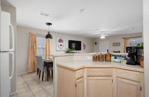 Kick back and relax in this calm, stylish space. 65" HDTV with Roku. Each bedroom has it's own TV and private full bathroom. Gated and keyless entry. Fully stocked laundry with washer and dryer. Backyard with barbecue grill. Great location minutes away from Valley International Airport and Valley Baptist Medical Center. 40 min from South Padre Island and McAllen, 20 min from Brownsville. SpaceX, shopping centers, fine dining, trails, and birding centers nearby. Bikes available upon request.