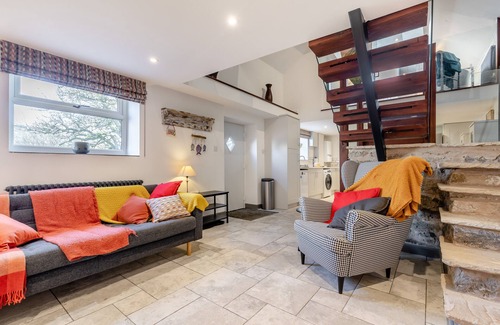 Offering underfloor heating and a comfortable interior with a stylish touch, this delightful cottage for two is an ideal base for lovers of the outdoor planning to explore the beautiful Peak District National Park. Set in the village of Peak Forest, it is close to a network of scenic walking trails, along with pretty villages such as Tideswell, the ‘Cathedral of the Peaks’, and Miller’s Dale (both within 5.5 miles). Below ground, Peak Cave (6 miles), deep inside a gorge beneath Peveril Castle, is said to be the largest natural cave entrance in the UK and illustrates the lost, subterranean world of Derbyshire lead miners. The splendid spa town of Buxton (5.5 miles) claims to have it all for every visitor, from the healing waters to strolling through wonderful ornamental grounds such as the 10-acre Pavilion Gardens, and enjoying a vibrant range of music, theatre and festivals. Enter what seems to be a small stone cottage to find a light, bright and spacious interior beneath a vaulted ceiling with beams and skylights. A staircase with glass panels on either side leads up to this delightful mezzanine floor, which houses a country-style wooden double bed. On the ground floor, with an open-plan living space, a short flight of original stone steps tucked behind the new staircase links past and present. Watch the Smart TV or make plans for tomorrow on comfortable seating that includes a sofa and chairs decked with bright cushions. Books, pictures and plants add a homely touch and windows offer garden views. At the other end of the room, the well-planned kitchen has all the would-be chef might need to rustle up tasty dinners for two at the pretty dining table. A swish bathroom, with a free-standing bath and a walk-in shower, completes the layout of this cosy country hideaway. Outside, there is a small garden area to the front.