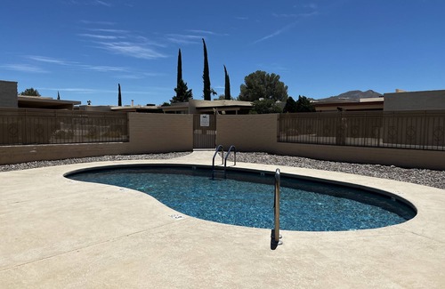 Charming, serene desert oasis. Peaceful, scenic home near the Santa Rita Mountains. Spacious 2 bedroom, 2 bath with Den and living/dining room. Garden patio offers views of mountains. Friendly townhome community offers pool, BBQ area with kitchen, bathrooms. Great birdwatching, stargazing location also close to restaurants, shopping, medical.