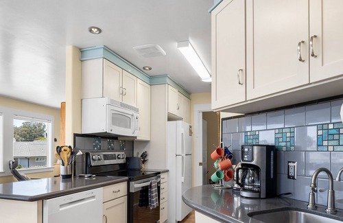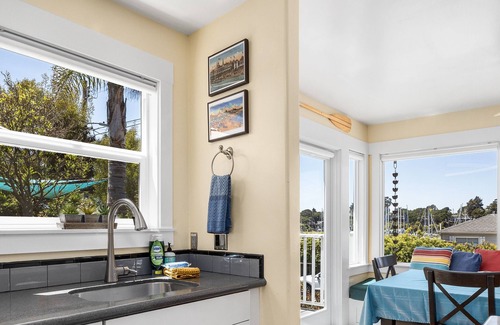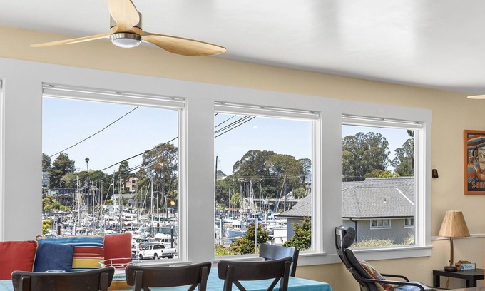 Located just steps from the picturesque Yacht Harbor, this beautifully remodeled 2-bedroom, 1-bathroom home offers stunning, nearly unobstructed views of boats drifting in and out of the harbor. With bright, open spaces, skylights, and plenty of windows, this home is a serene retreat. The cozy living room, complete with a flat-screen HD TV and a warm fireplace, invites you to relax after a day of adventures.