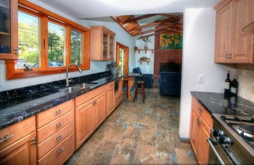 Tranquility and wildlife abounds at this beautifully renovated artists studio overlooking Perch Cove on Potter Pond. The home is well appointed including in-home laundry, and sleeps 4 with a queen bed in the master bedroom and a futon/double bed in the loft space. The kitchen features granite surfaces, stainless steel appliances, wood cabinetry, and a gas range. The beautifully tiled bathroom includes a bathtub with a shower. The large open living room has a floor to ceiling brick fireplace with a cathedral ceiling, a comfy couch and chairs, with large sliding glass doors opening out to the sun deck with spectacular water views of Perch Cove and Potter Pond. Below the deck is a wonderful shaded patio space with a bartop, a gas grill, and an outdoor shower. This is an amazing place to while away time as it is usually much cooler, faces toward the prevailing southwest breeze, and has the same bucolic water views where wildlife including osprey, heron, otters, etc. can often be seen. Granite steps lead down to the pond where you can launch your kayaks or canoes. Explore the cove, or venture out to Potter Pond and down to the famous Matunuck Oyster Bar for lunch! This property is ideal for those seeking quiet tranquility while enjoying the properties amenities, and for those who enjoy direct water access to Potter Pond. Located just minutes to East Matunuck State Beach, South Kingstown Town Beach, downtown Wakefield, and all area amenities including parks, tennis courts, farm stands, supermarkets, seafood restaurants, coffee shops, movie theaters, etc. Great access to transportation with the Kingston Amtrak Station, Route 95, Providence, Newport and Watch Hill in close proximity.