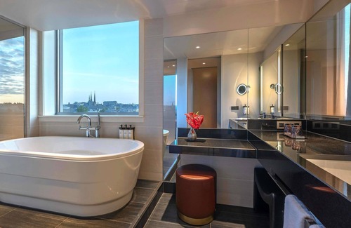 Bathrooms include showers, bathrobes, slippers, and designer toiletries. This Luxembourg City hotel provides complimentary wireless Internet access, with a speed of 250+ Mbps (good for 3–5 people or up to 10 devices). Additionally, rooms include complimentary bottled water and coffee/tea makers. Hypo-allergenic bedding, irons/ironing boards, and change of towels can be requested. A nightly turndown service is provided and housekeeping is offered daily.