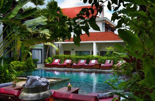 Nestled within lush tropical gardens in a peaceful setting, Sokkhak Boutique Resort & Spa offers stylish and luxurious accommodations away from the hustle and bustle of Siem Reap. The resort features an outdoor saltwater pool, while guests can enjoy meals at the elegantly designed in-house restaurant or unwind with a drink at the bar or lounge. Complimentary Wi-Fi is available throughout the property. Featuring traditional Khmer décor, the rooms are beautifully appointed with antique furniture and classic artwork, complemented by premium-quality linen and bedding to ensure maximum comfort. All rooms and suites are equipped with air conditioning, antique-style tiles, hardwood flooring, a flat-screen cable TV, and a writing desk. Selected units also include a seating area and a private balcony with lounge space for relaxing or dining, offering serene views of the pool and garden. The end suite bathrooms feature a rain shower, an elegant vanity counter, full bathroom amenities, slippers, and complimentary toiletries. The 24-hour front desk provides a range of guest services, including tour arrangements, shoeshine, laundry, currency exchange, ticketing, and concierge assistance. Guests may also rent bicycles to explore the surrounding area or participate in local cooking classes. The resort offers a variety of curated excursions, including visits to the Angkor Wat Archaeological Park. The expert guides and drivers are passionate about the history of the temples and will ensure an enriching experience. The new Siem Reap airport (SAI) is located approximately 33 mi from the city center. The resort offers SUV transfer service at USD 35.00 net per trip (one-way), accommodating up to two guests. Savor authentic Cambodian and Western cuisine at our sister properties Chanrey Tree Restaurant, Sokkhak River Dining, and Sokkhak River Lounge. All in-house guests enjoy a 10% discount on food and beverages, and 15% off individual spa treatments. Rejuvenate with signature therapies at Sokkhak Spa Riverside, expertly delivered by the skilled therapists. The property is conveniently located near popular attractions, 1640 feet from Wat Thmei, 0.9 mi from Apsara Theater, and 2.6 mi from Angkor Wat. Angkor National Museum is just 1.2 mi away, while the vibrant Pub Street and Old Market are 2.4 mi from the resort.