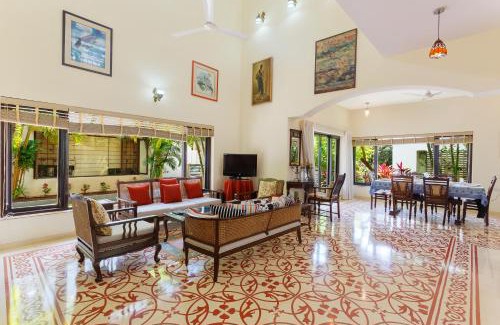 1.1 miles from Candolim Beach in Candolim, Solace Est 6BR Family Pool Villa Candolim Cook offers accommodations with access to an indoor pool. This villa provides air-conditioned accommodations with a balcony and free Wifi. Chapora Fort is 7.9 miles away and Basilica of Bom Jesus is 12 miles from the villa. The villa features 6 bedrooms, a fully equipped kitchen with an oven, a washing machine, and 6 bathrooms with a hair dryer and free toiletries. Towels and bed linen are provided in the villa. Guests can also relax in the garden. Church of Saint Cajetan is 13 miles from Solace Est 6BR Family Pool Villa Candolim Cook, while Thivim Railway Station is 13 miles away. Manohar Parrikar International Airport is 18 miles from the property.