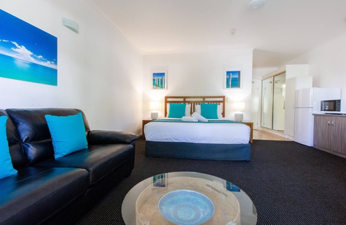 ESCAPE TO THE TROPICS. PORT DOUGLAS WHERE THE GREAT BARRIER REEF AND THE DAINTREE MEET. NEW FREE UNLIMITED WI FI IN ROOM. QUIET Corner position, Deluxe King Studio; larger than standard rooms. Comfy Pillow top mattress and large fridge not bar fridge. Leather Sofa Bed. Resort facilities include a lagoon-style pool with waterfall and swim-up bar, restaurant, bar, gym, day spa, tour desk, and more.