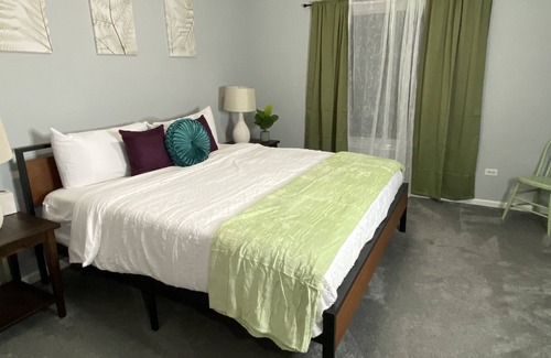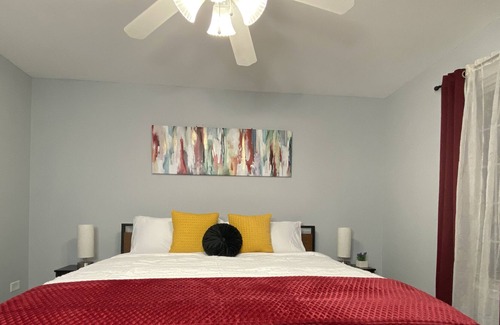 Wind down and relax in our 2-story home decorated to mimic a classy and sophisticated night in wine country! This home is within walking distance to all the essentials food, shopping, activities and more. Located in a quite suburb this unit features 2 king size beds, 1.5 baths, free Wi-Fi, semiprivate backyard and garage. You'll love pampering yourself in this beautiful town home.