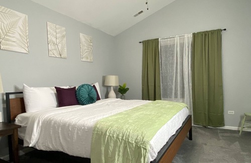 Sophisticated Town home w/ King Beds and Fenced Yard is located in Oswego. Sophisticated Town home w/ King Beds and Fenced Yard provides accommodation, featuring Bedding/Linens, Kitchen, Laundry, among other amenities. This House features Bedding/Linens, Kitchen, Laundry, to make your stay a comfortable one.