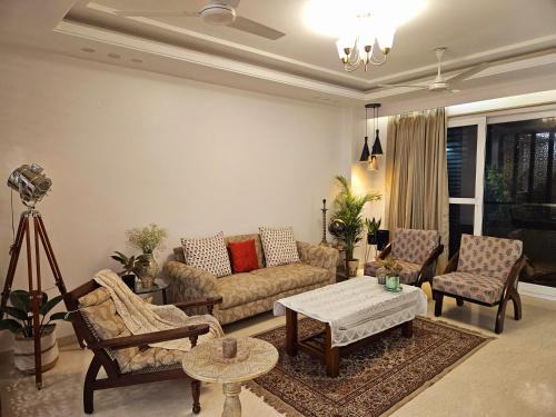 Featuring a garden, South delhi Monument View by Maple Key Stays - 3BHK & Terrace offers accommodations in New Delhi. This property offers access to a balcony, free private parking, and free Wifi. The accommodation features full-day security and daily room service for guests. Offering direct access to a terrace with garden views, the spacious air-conditioned apartment consists of 3 bedrooms. A flat-screen TV is available. Guests at the apartment can enjoy an à la carte breakfast. If you'd prefer to cook in the comfort of your own space, you can make use of the kitchen facilities. Tughlaqabad Fort is 2.8 miles from South delhi Monument View by Maple Key Stays - 3BHK & Terrace, while Qutub Minar is 4.7 miles from the property. Delhi International Airport is 12 miles away.