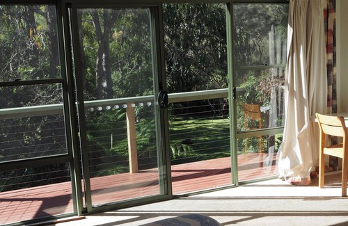 Modern well-equipped house at 54 Banyandah St South Durras. Three bedrooms sleep seven: 2 queen beds, 3 singles, two bathrooms and washer and drier. Modern kitchen with all amenities including dishwasher, microwave and Nespresso machine, lots of crockery and quality cooking gear and pantry items e.g. coffee capsules, tea and sugar. Smart TV in living room and TV with DVD/CD player in master bedroom. Internet. Living and dining room opens onto large north-facing deck with bbq, tables seating 8+ and easy chairs overlooking back lawn and nature reserve visited by kangaroos and parrots. Two large umbrellas. Master bedroom opens onto upper balcony with view among the trees. Slow-combustion wood heater and electric heaters for winter, fans for summer. Electric blankets, dounas and blankets supplied, please bring sheets and towels. Table tennis and bicyles for guests. No pets because no fences. Easy 300 m walk to Cookie's beach, one of the south coast's best beaches, which is always safe for families and has a boat ramp. Weekly tariff $2300-2700 for up to seven guests during summer school holidays and Easter.