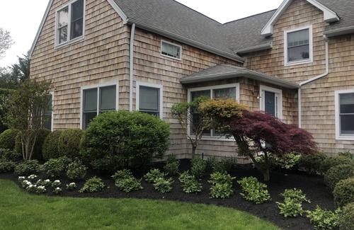 This cedar shingle traditional Hamptons house is beautifully decorated with all of the modern amenities inside. amenities include: washer/dryer, powder room, downstairs en-suite bedroom, two family rooms, 4 tv's, sub-zero, viking range ,and central air. Beautiful, flat, sunny property and great for entertaining, grill and fire pit. Private and pristine. 23’ foot hedges manicured landscaping. Perfect entertaining