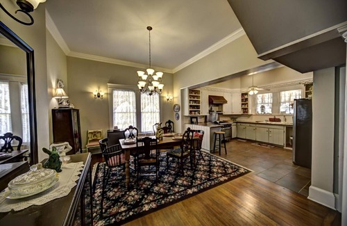 Be enchanted by this charming restored 1901 retreat with original details in the wood floors, antique fireplace, doors, and trim. This spacious 6 BD,3 full Bath is located on a crepe myrtle lined boulevard. The home is tastefully decorated with our guests comfort in mind. Only 0.3 miles to the historic downtown over the Church Street Bridge. Wear comfy shoes and bring a flash night if you are walking at night. Some old sidewalks are uneven - watch your step.
