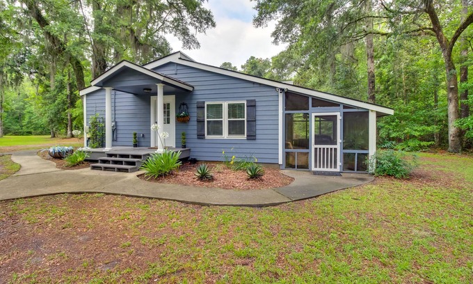 Escape the busy city to a sunny retreat in Guyton at this 3-bedroom, 2-bath vacation rental. This home is highlighted by a screened-in patio, a hot tub, and a fully equipped kitchen! Location is everything and at this home, you are in close proximity to shopping, the interstate, and all that Savannah has to offer, just 16 miles away! After exciting days, return to your home away from home and enjoy a cold drink on the patio with your group. Your perfect Georgia escape awaits