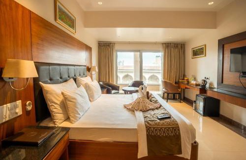 Southern Star, Davangere is offering accommodations in Dāvangere. Each room at the 4-star hotel has garden views, and guests can enjoy access to a garden and to a bar. The property has a 24-hour front desk, airport transportation, room service and free WiFi. The hotel will provide guests with air-conditioned rooms with a desk, an electric tea pot, a fridge, a minibar, a safety deposit box, a flat-screen TV, a balcony and a private bathroom with a bath or shower. All rooms have a closet. Buffet and continental breakfast options are available at Southern Star, Davangere. At the accommodation you'll find a restaurant serving French, Indian and Italian cuisine. Vegetarian and halal options can also be requested. Shivamogga Airport is 61 miles from the property.