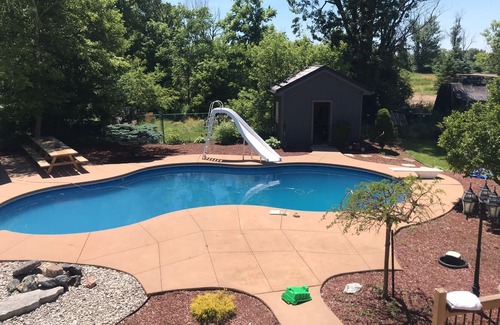 This suburb paradise LOWER UNIT is located half way between Lambeth and Delaware. It offers a very private back yard with a HEATED pool kept at 88 degrees farenheit.