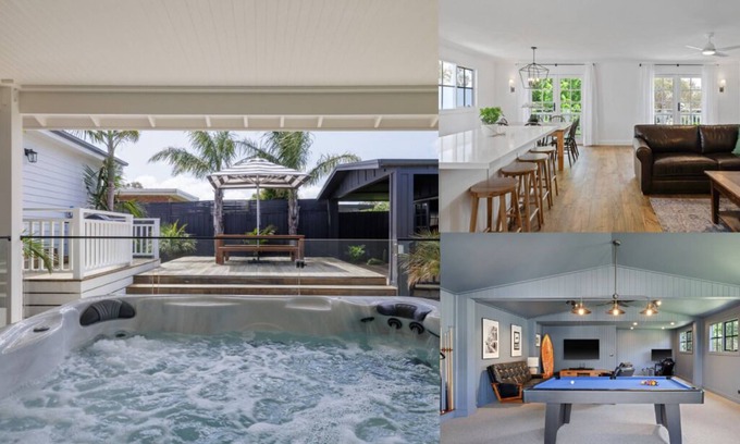 Spa jacuzzi, modern, stylish, separate games room, backyard, fully fenced | House in Cape Woolamai