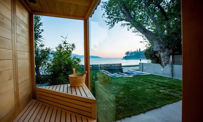 Our Philosophy: The perfect vacation is comprised by many factors, with the most important of them being the accommodation. The ideal villa should be comfortable, warm, welcoming and offer the guest a pleasant stay, renewal and rejuvenation in a Zen environment. Discreet luxury, the most modern spa equipment, modern home appliances, absolute privacy, stunning views of the sea with direct access to it and absolute silence are provided by the Spa Villa Skaloma.