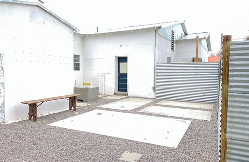 In the heart of Marfa and within walking distance to the St. George Hotel , The Chianti Foundation, Main Street with several restaurants, cool shops and bars. This room features a queen size bed. It is a nice size room with its own entrance. Can be rented with space next door to sleep up to 4 people and would include the kitchen in the other unit..The back patio is shared among guests and can be accessed through the back of the building.