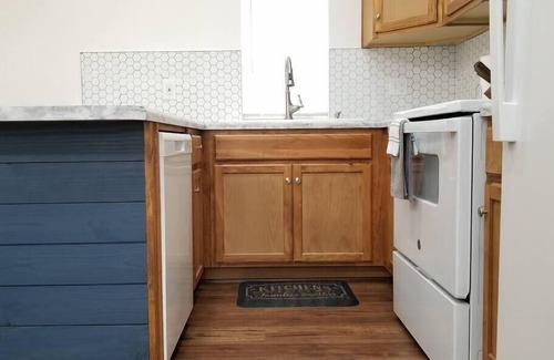 This brand new home is fully furnished with new furniture. The high ceilings and natural light make the home feel very spacious and inviting.Enjoy a light snack and chilled, filtered water upon arrival. Relax on the private patio and enjoy the outdoors. This tiny home is close enough to town to get anywhere fast and secluded enough for a private getaway for you and your family.