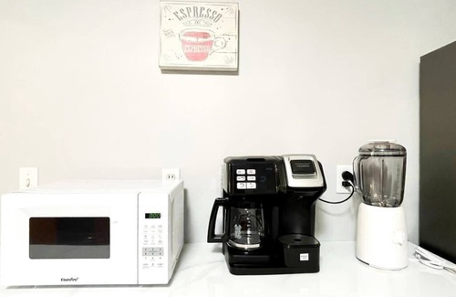 Relax in the spacious and cozy living room while watching our smart TV. Enjoy the large, fully- equipped, and well-stocked kitchen - the perfect place to cook delicious meals. Complete with coffee, stainless steel appliances, and cooking essentials.