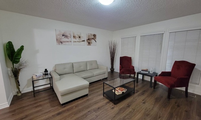 Spacious Rancher Ground level no stairs 3 bed 2 full bathroom sleeps 13 nice and cozy place to keep all the family together.Very convenient area 5 min to Hwy 1, close to Guilford shopping centre.Easy in and out