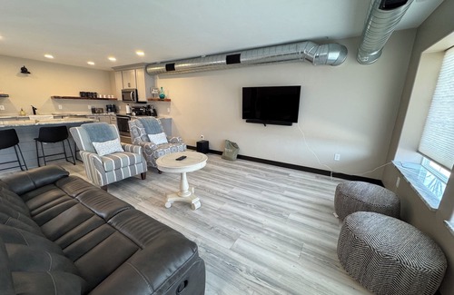 This charming lake house offers exclusive access to a private marina, complimentary kayaks, and a gas fire pit—ideal for cozy evenings by the water. Inside, the home features a warm and inviting open concept living space, a fully equipped kitchen, and generously sized bedrooms for comfortable stays. Originally a general store, this unique property sits at the end of a quiet lot behind private storage units, offering low traffic, ample privacy.