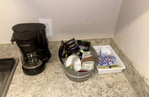 Kitchen upgrades in addition to basic appliances for your convenience: Air fryer, coffee maker, tea kettle, blender, Tri Crock Pot, indoor smokeless grill, induction cooktop, and a food processor