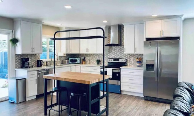 The home is new remodeled in 2021, over 1500 sq ft, smart home features and modern design. Full functional open Kitchen, Living room, a large dining table to seat everyone and a huge TV for you to enjoy with Roku. Washer and Dryer are available in the garage. High-speed wifi (Over 400MB).