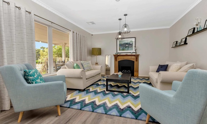 Maisonnets invites you to stay at this charming 4-bedroom home situated on a 13-hectare vineyard. Featuring reverse-cycle air-conditioning and both indoor and outdoor lounge areas, it’s a perfect place to unwind. The lovely garden boasts peach and lemon trees, which you can pick from in season. Only a 3-minute drive to eateries and a supermarket, with more options in nearby Tanunda, you’ll find Maggie Beer’s Farm Shop just 2 minutes away, offering a café, restaurant, and cooking classes. Coullthard Reserve with family-friendly picnic areas is also close by, and the region is renowned for its endless wineries.
