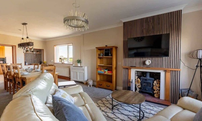 Perfect for families and groups, this charming home features a cosy living room with a log burner, a large open kitchen and dining area for memorable meals, and plenty of room to relax.